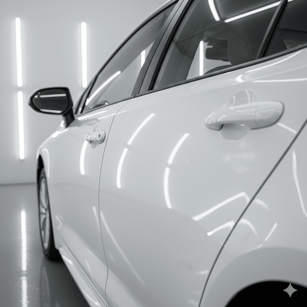 بعد الانتهاء، الفارق في اللمعان كان واضح جدًا — السيارة رجعت كأنها جديدة من صالة العرض.